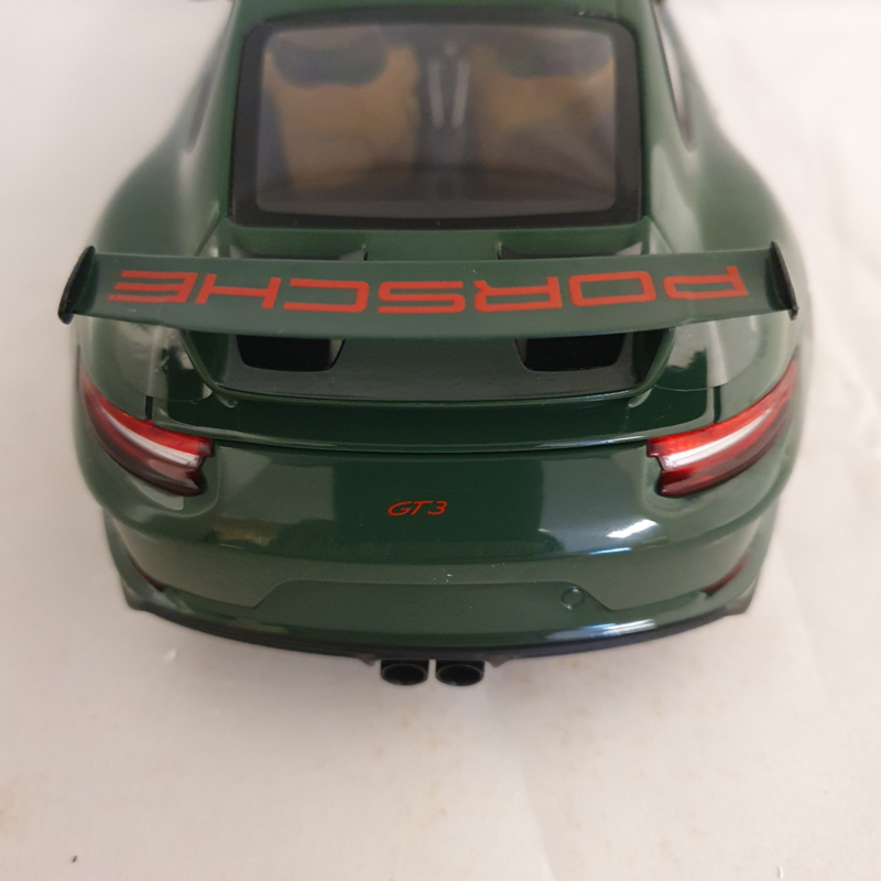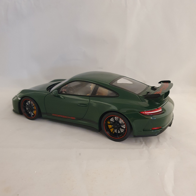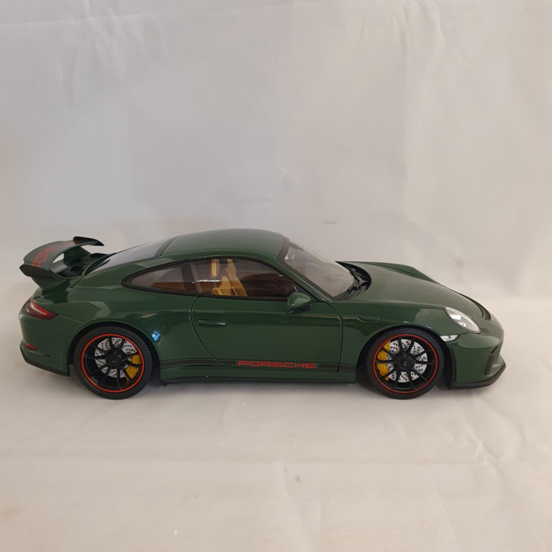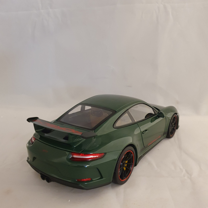 Porsche schaalmodel van de Porsche 911 991 GT3 2017 in de kleur Irish Green.
